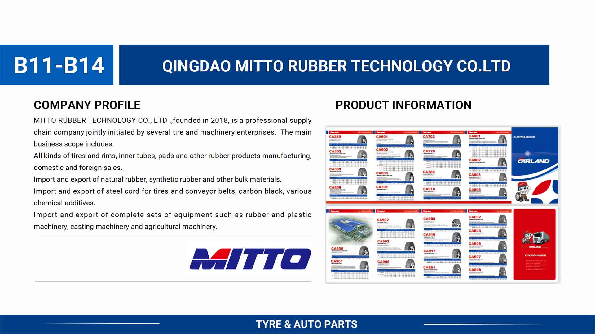 Tires and rims, inner tubes, pads and other rubber products , rubber and plastic machinery, casting machinery and agricultural machinery.